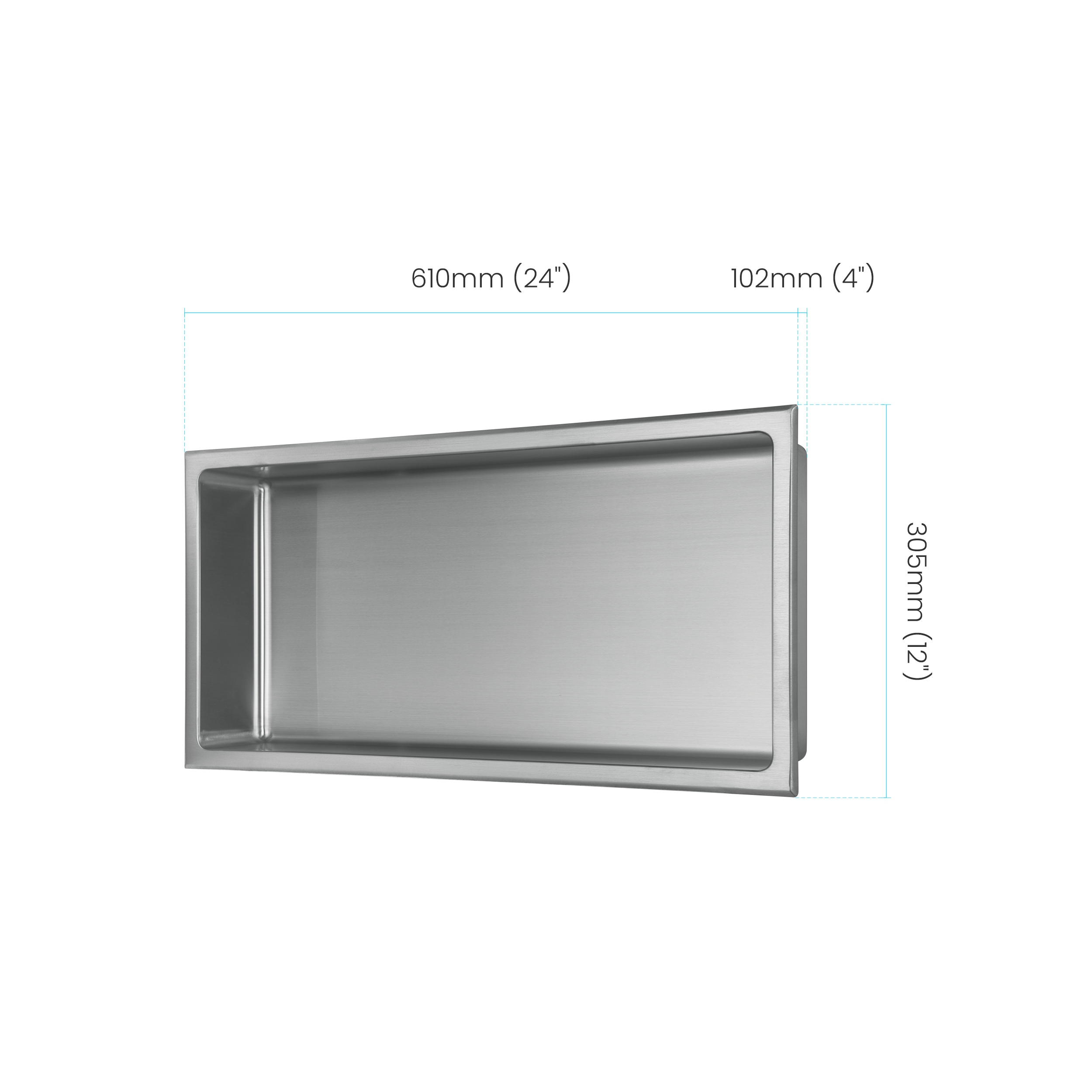 Abraccio 12” x 24” Stainless Steel Recessed Shower Niche By Kubebath – Brushed Silver