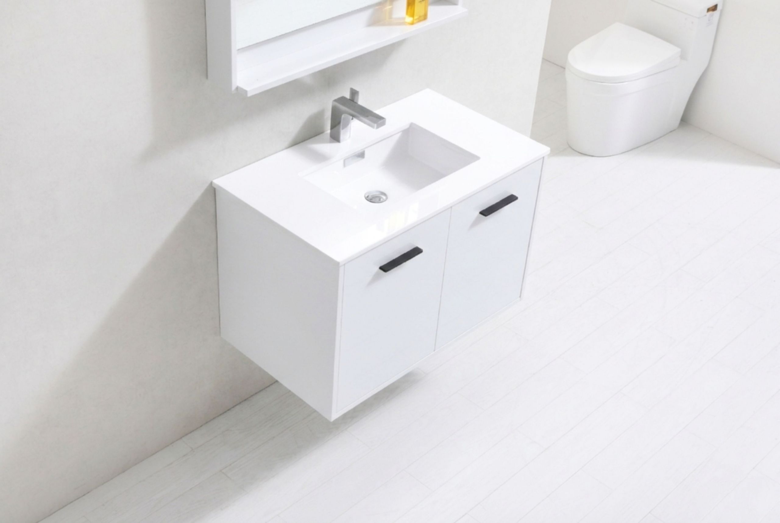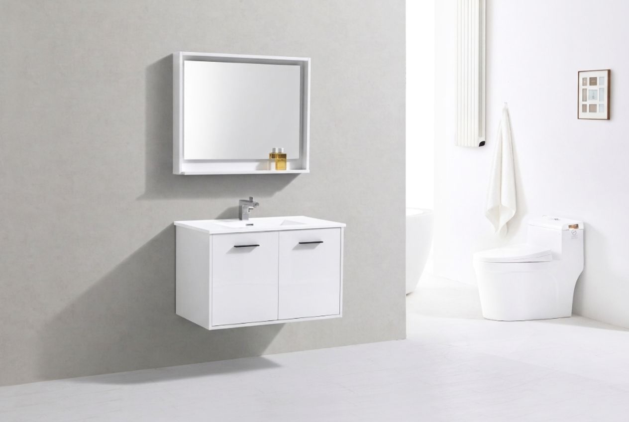 Bosco 36″ Gloss White Modern Bathroom Vanity w/ White Countertop