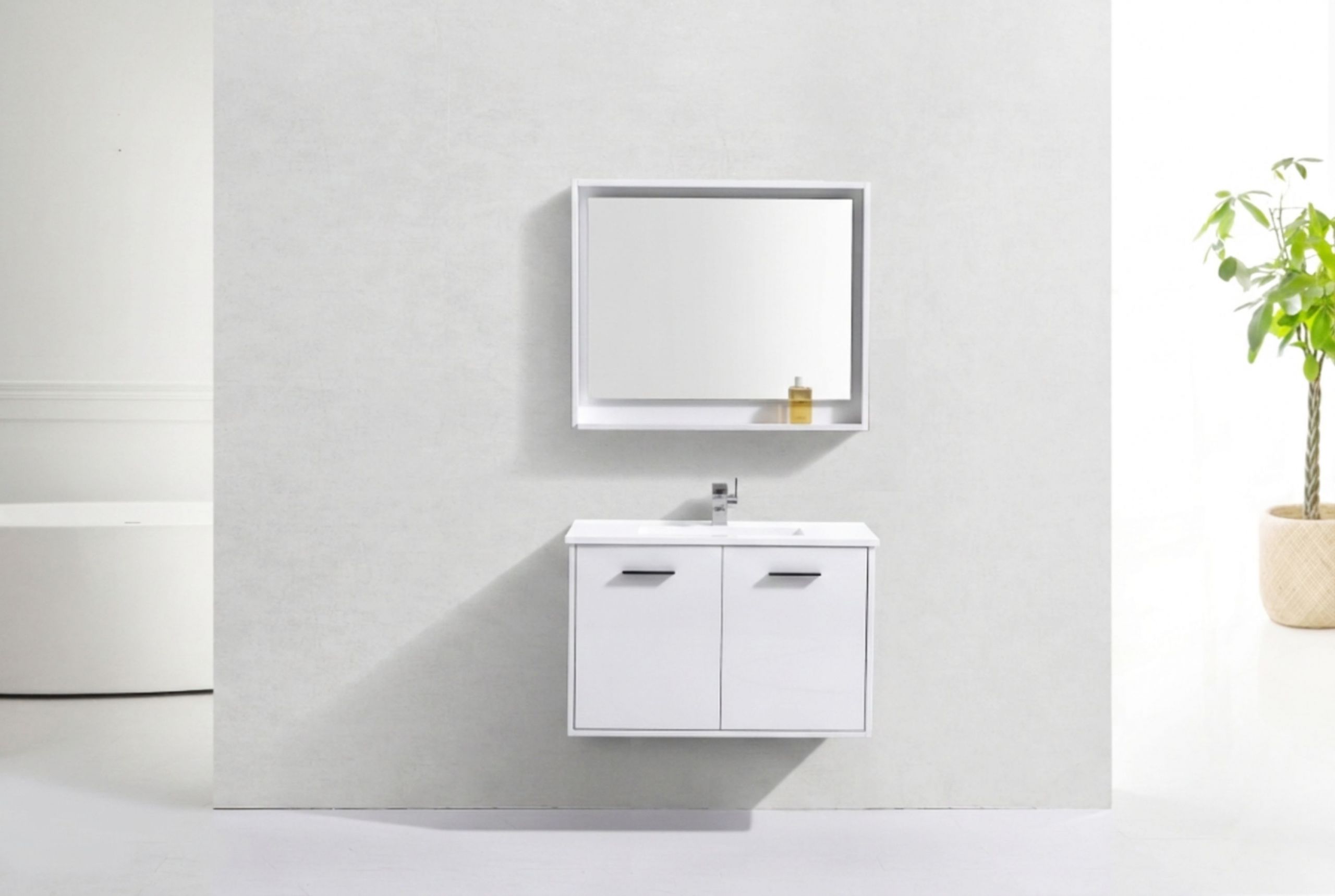 Breathe new life into your bathroom décor with the new Bosco modern Bathroom Vanity. The Bosco Vanity Set includes a White Countertop and undermount reinforced acrylic sink. This Vanity features two doors and a nested drawer.