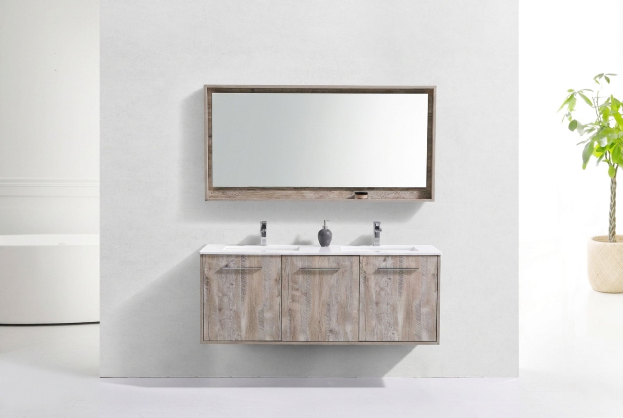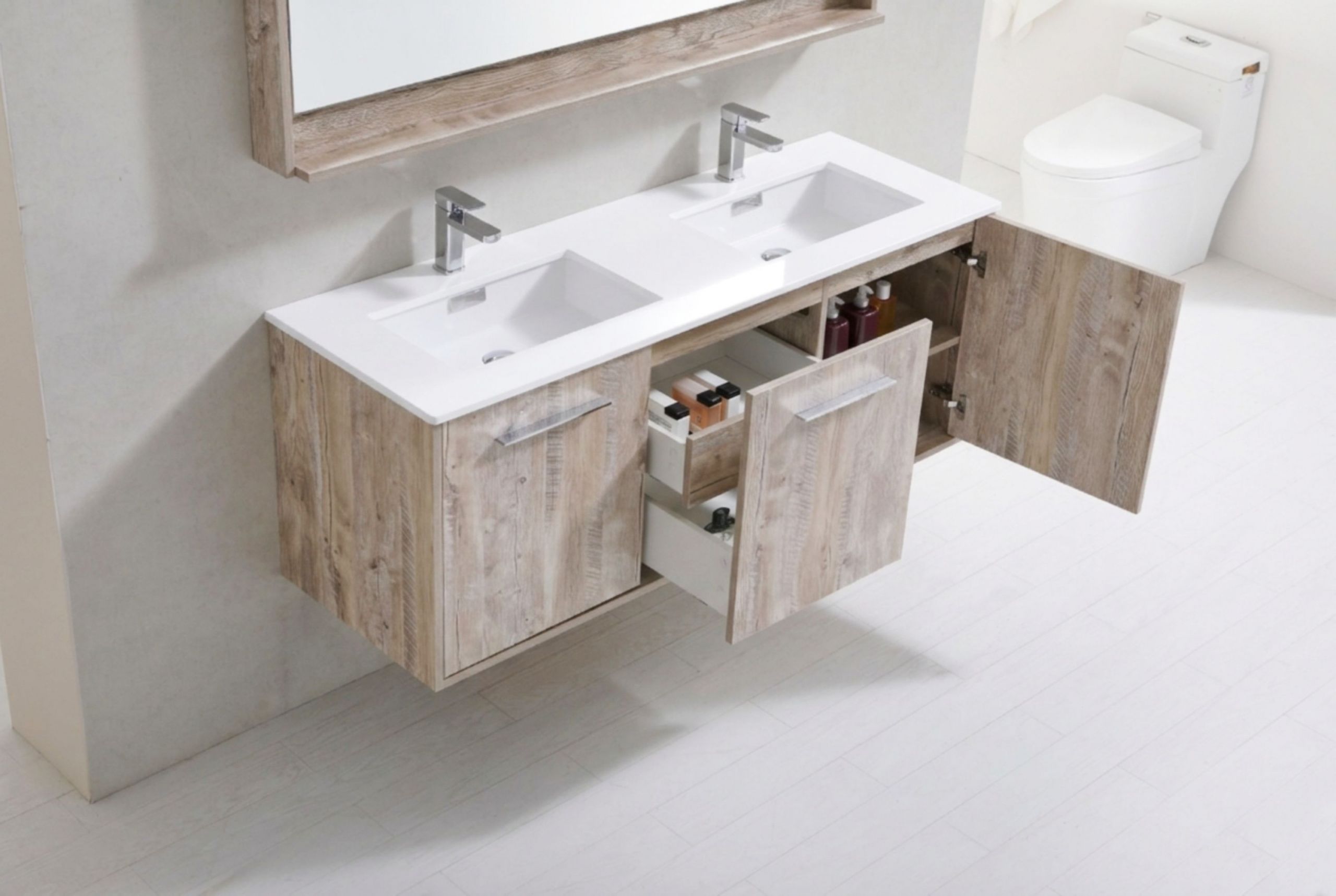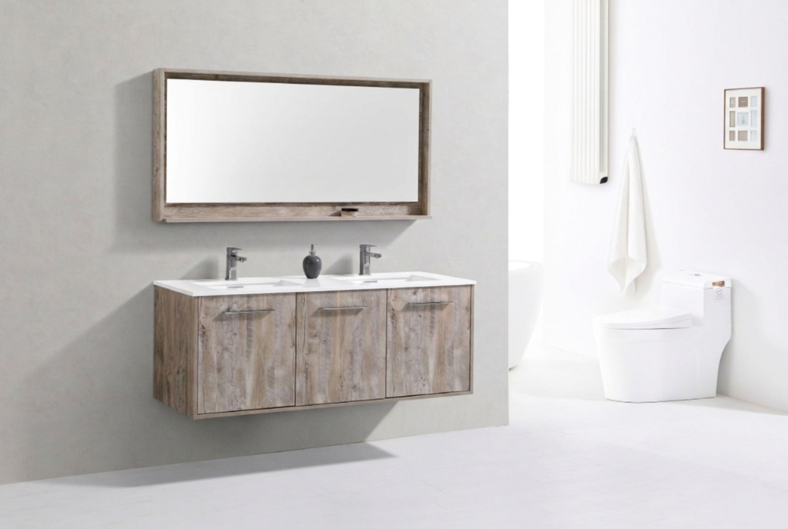 Bosco 60″ Nature Wood Modern Bathroom Vanity w/ White Countertop